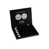 Écrin de prestige destiné aux collectionneurs de la série numismatique allemande des 5 euros « Zones Climatiques de la Terre ». Ce coffret noir élégant accueille l'intégralité des 25 pièces de collection (ateliers A, D, F, G, J) en capsules de 27 mm de diamètre intérieur. Le plateau à fond de feutrine noire offre 25 alvéoles circulaires de 33 mm, garantissant un rangement sécurisé et organisé. L'illustration en couleurs du thème tropical orne le couvercle et l'intérieur, tandis que la doublure de satin noir rehausse la présentation. Fermeture magnétique fiable. Dimensions : 305 x 245 x 30 mm. Un rangement professionnel pour préserver et valoriser cette série aux anneaux polymères translucides distinctifs. Capsules non incluses.